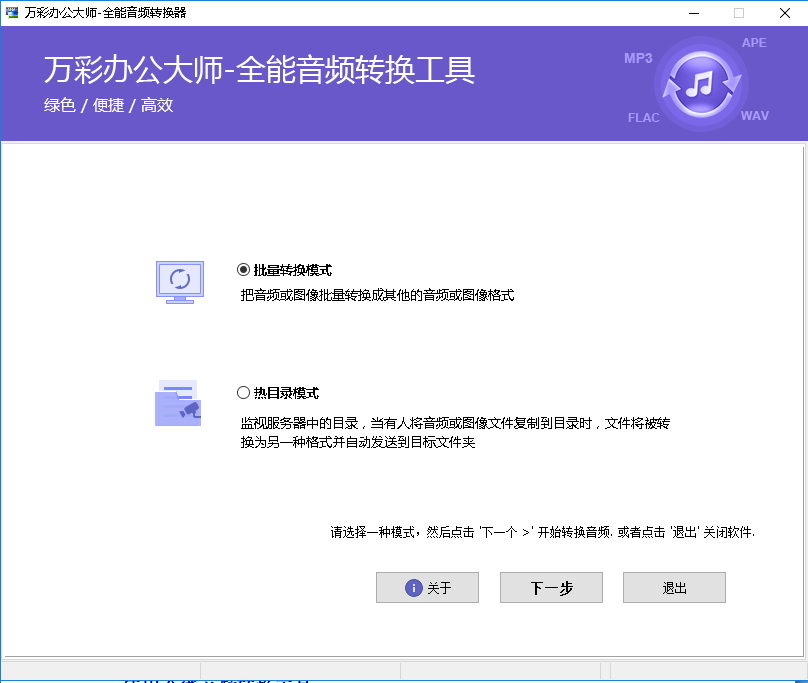 在添加音频开始转换前,你需要选择一种转换模式: 批量转换模式或热目录模式,然后点击“下一步”