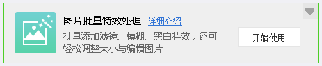 运行万彩办公大师OfficeBox,在图片处理工具集中找到图片批量特效处理工具,点击右侧“开始使用”按钮打开图片批量特效处理工具。