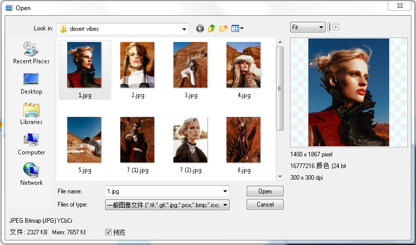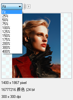 在弹窗右侧设置了图片的预览窗口,您可以在下拉列表中选择一个合适的缩放比例查看需要添加的图片。在图片的下方,提供图片的尺寸比例和分辨率等数据。