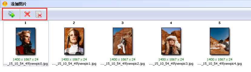 添加所需要进行批量特效处理的图片后,图片则显示在“添加图片”窗口中,您可以继续添加图片,或对不适合的图片进行删除或清空。