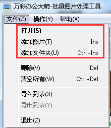 除了通过“添加图片”按钮添加图片外,您也可以通过“文件”->“添加图片”/“添加文件夹”按钮快速添加图片。
