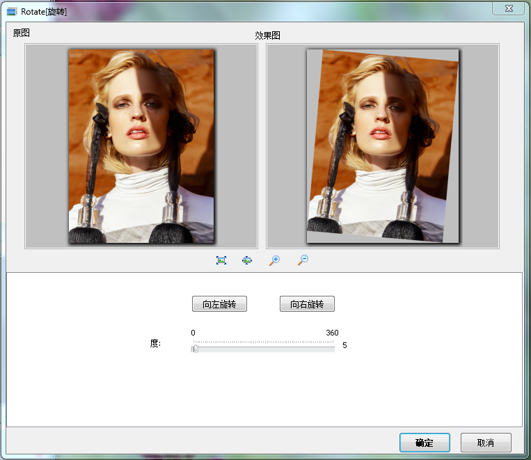 1.旋转:双击该选项打开弹窗,直接点击“向左旋转”或“向右旋转”按钮直接旋转图片,您也可以在直接调整“度”选项,为图片设置一个合适的旋转度,以便达到更好的图片展示效果,所有设置完毕后点击“确认”按钮。