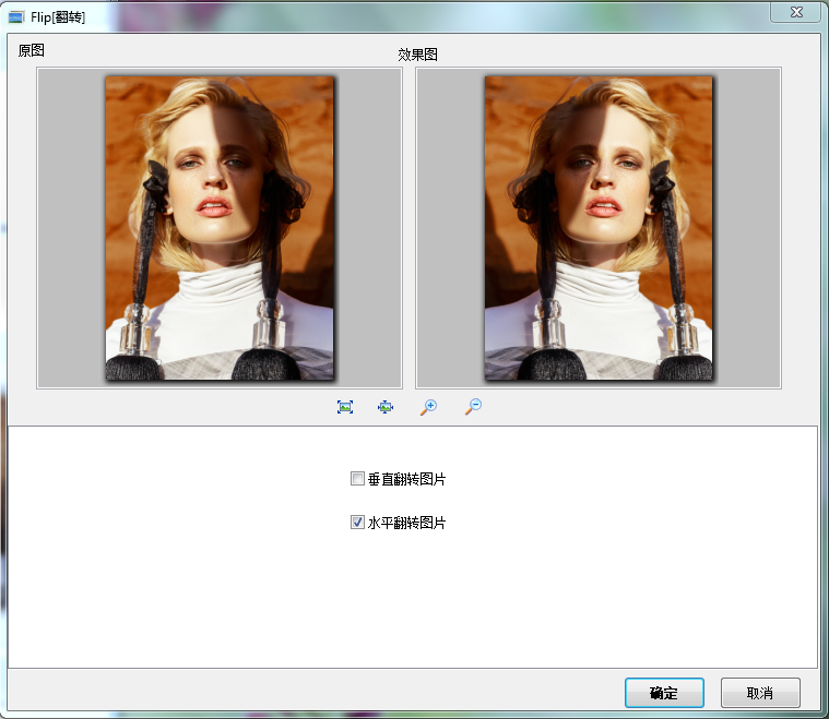 2.翻转:双击该选项打开弹窗,可对图片进行垂直翻转或水平翻转,点击勾选选项前面的复选框即可,所有设置完毕后点击“确认”按钮。