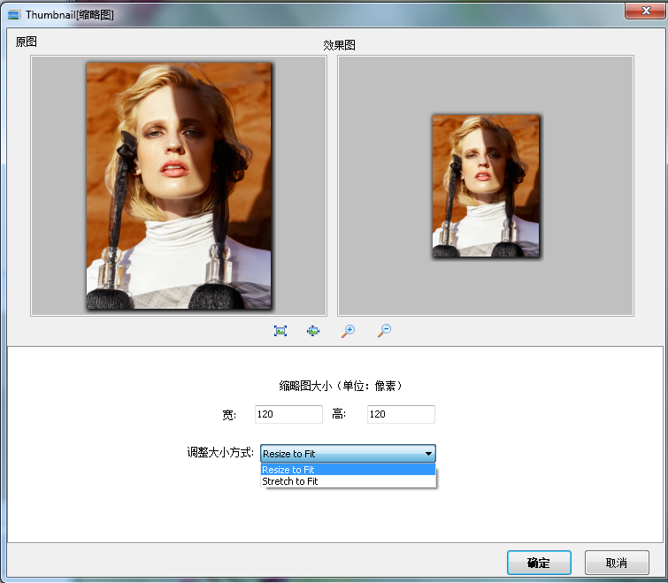5.缩略图:双击该选项打开弹窗,按需设置图片输出的缩略图大小和调整大小方式,所有设置完毕后点击“确认”按钮。