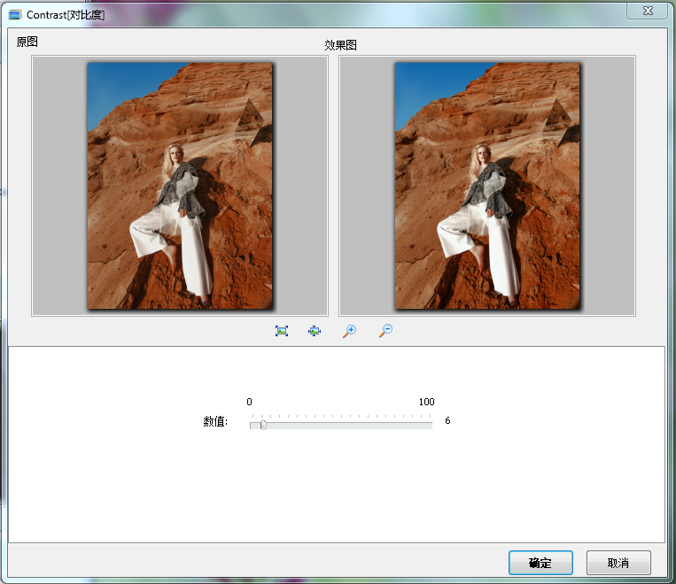 1.对比度:双击该选项打开弹窗,拖动数值刻度直接调整对比度,然后点击“确认”按钮。