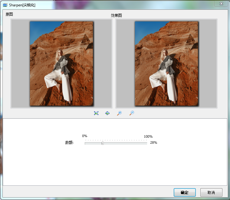 4.锐化:双击该选项打开弹窗,拖动数值刻度直接调整图片的锐化数额,然后点击“确认”按钮。
