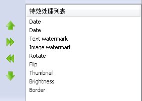 为添加的图片设置好特效后,图片批量特效处理工具提供一个“特效处理列表”,您可以直接双击列表中的特效进行修改。您还可以点击选择列表中的特效,然后对特效的进行上下移动、添加或删除操作。