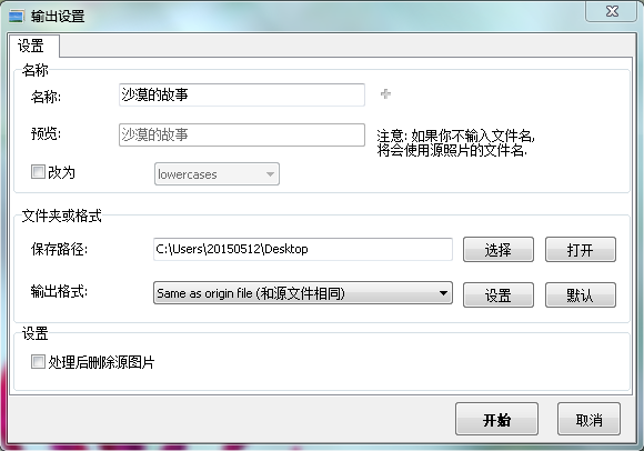 设置图片批量特效处理工具的“特效处理列表”后,点击“执行批处理”按钮开始自定义图片的“输出设置”。