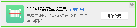 运行万彩办公大师OfficeBox,在图片处理工具集中找到PDF417条码生成工具,点击右侧“开始使用”按钮打开PDF417条码生成工具。