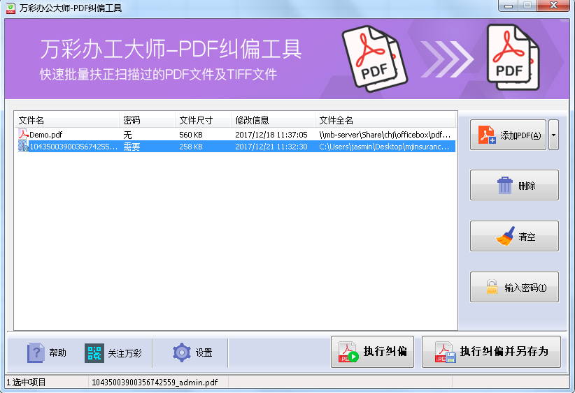 PDF 纠偏工具支持扫描的文字型PDF以及TIFF图片文件。其他图片格式可能会导致出错。 前 后