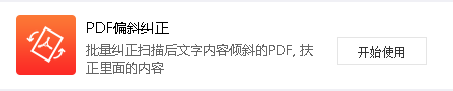 通过万彩办公大师,选择“PDF工具集合”, 选择“PDF偏斜纠正”点击“开始使用”运行批PDF纠偏工具。