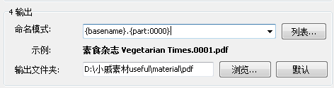 “顺序”项允许使用“宏”{part}来设置分割文件的顺序。 “一般” 选项表示文件从顺序1开始,间隔为1。而在“高级”选项中,您可以有更多的设置。例如,设置顺序从10开始,间隔为5,然后在“输出”-“命令模式”中使用{part:00000},即输出的分割文件顺序为 00010.pdf、 00015.pdf、 00020.pdf 、00025.pdf、 00030.pdf。