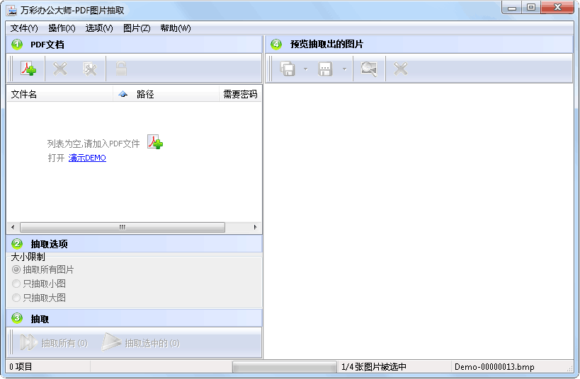 无需安装Adobe Acrobat 阅读器,PDF图片抽取工具即可运行,对已加密的PDF文件也同样奏效。