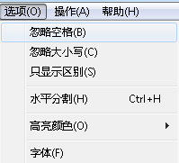 选项”开始设置比较选项。可选择自定义高亮颜色, 设置水平分割方式,设置字体等选项。